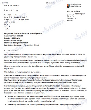学术背景方面,杨同学的加权平均分会比算术平均分要高一些,主要是大三核心专业课的功劳。软背景方面,杨同学有1段已经结束的实习,并且语言成绩相当不错,选校方案是伯明翰主审,选择其他一些英国大学保底,软背景方面需要再找一份含金量高的实习,鲸录文书规划老师也辅助学生搭建初稿创作,后续帮助进行润色,投递申请后,3周伯明翰就传来了好消息!