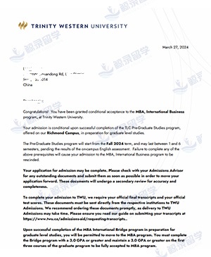 方同学 录取国家:加拿大 录取院校:西三一大学 录取专业:国际商务 录取学历:研究生