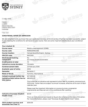 录取院校:悉尼大学