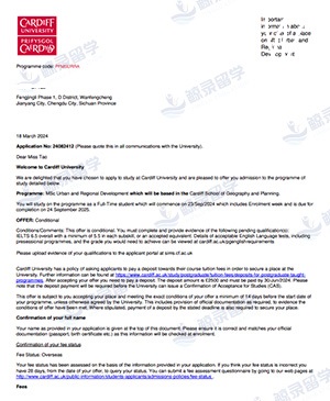 张学生是国内双非背景,成功申请到英国卡迪夫大学城市与区域发展研究生